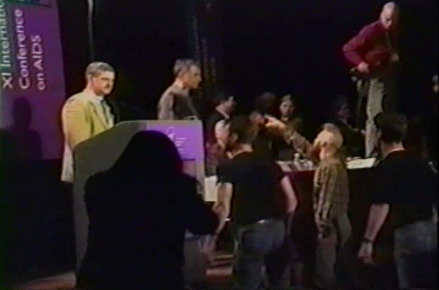 As deaths from AIDS receded in the mid to late 90s, two AIDS activists - David Pasquarelli and Michael Bellefountaine- became AIDS deniers, insisting HIV was a conspiracy perpetrated by the pharmaceutical industry. They took over the San Francisco chapter of the AIDS activist group ACT-UP, and unleashed a reign of misinformation and violent harassment. They overturned tables at a fundraising dinner with Anthony Fauci and Larry Kramer. They poured 25 lbs of used cat litter over the head of an AIDS Foundation executive. Their misinformation spread globally.